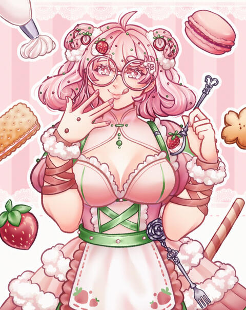SAKURA STRAWBERRYthe flavor that inspired it all!the original flavor who split off her personality into different aspects of four unique flavors.she is outgoing, bubbly, and energetic. she tries to bring smiles to those around her! a bit clumsy here and there...and very bad at most games. she adores each one of her viewers!CURRENT CHIBI MODEL