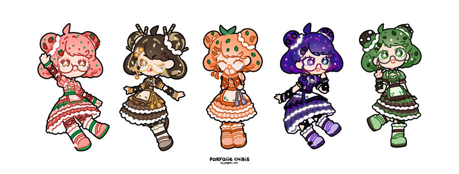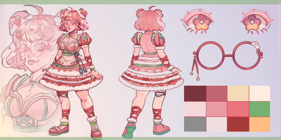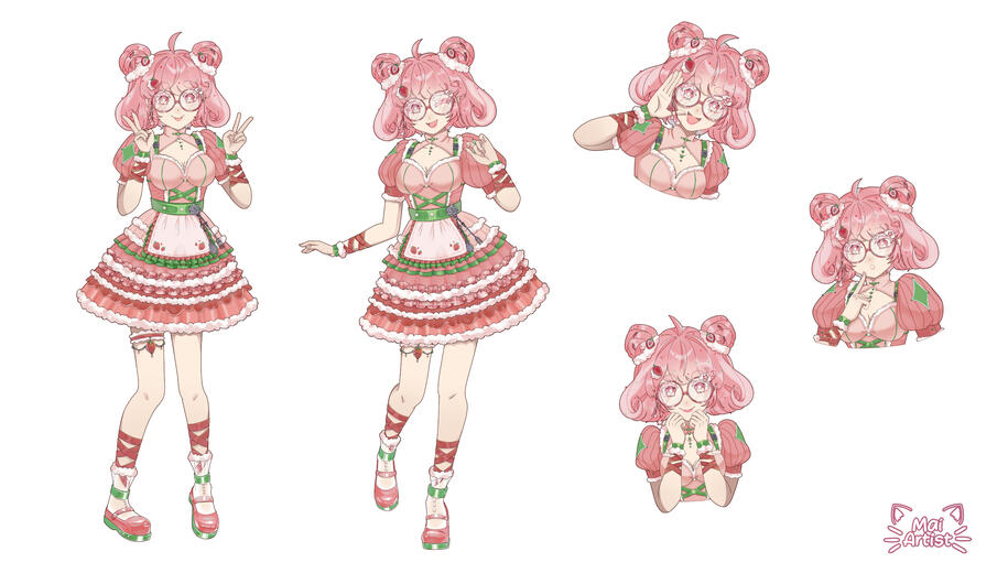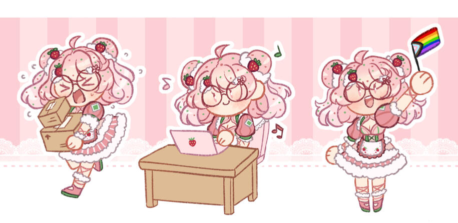 SAKURA STRAWBERRYthe flavor that inspired it all!the original flavor who split off her personality into different aspects of four unique flavors.she is outgoing, bubbly, and energetic. she tries to bring smiles to those around her! a bit clumsy here and there...and very bad at most games. she adores each one of her viewers!CURRENT CHIBI MODEL